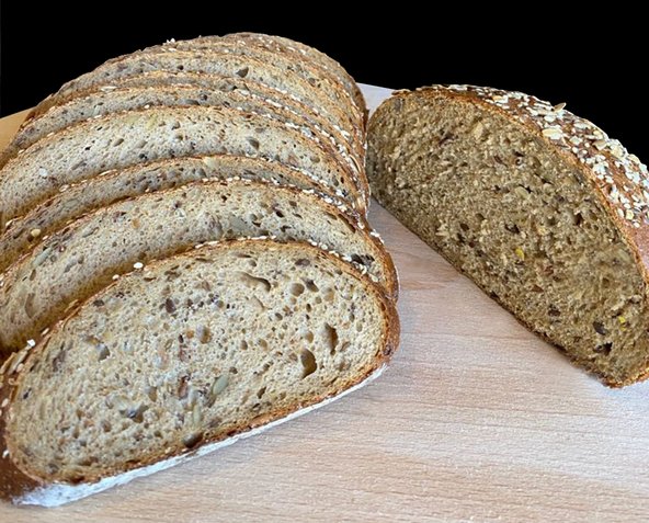 Roggenmehl, Weizenquellmehl, Wasser, Säurungsmittel: Milchsäure; Trennmittel: Siliciumdioxid; Weizenmehl, Weizengluten, Sprossenmischung: Dinkel, Mais, Weizen, Hirse, Luzerne, Lein, Linse, Erbse; Weizenvollkornmehl, Zucker, Amaranthmehl, Flohsamenschalen, Kartoffelflocken, Mehlbehandlungsmittel: Ascorbinsäure; Leinsamen; Sonnenblumenkerne, Kürbiskerne, Haferflocken, Roggenmalzflocken