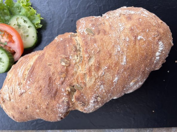 Dinkelmehl, Wasser, Sonnenblumenkerne, Kürbiskerne, Speisesalz, Backhefe, getrockneter Sauerteig: Roggenmehl, Weizenmehl,Milchsäurebakterien; Weizenquellmehl, Weizenmalzmehl, Acerola Fruchtpulver: Träger Maltodextrin