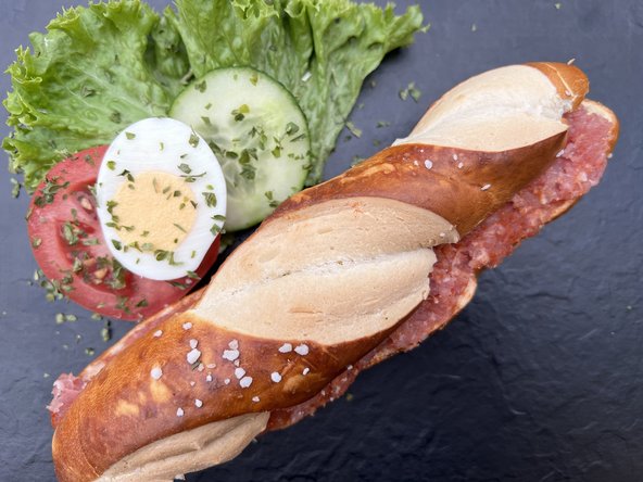 Laugenstange mit Mett bestrichen & mit Paprika bestreut
