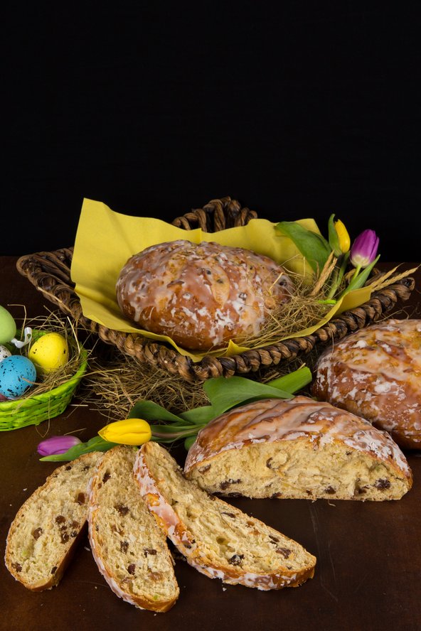 Hefegebäck mit Sultaninen, Sukkade und gestiftelten Mandeln