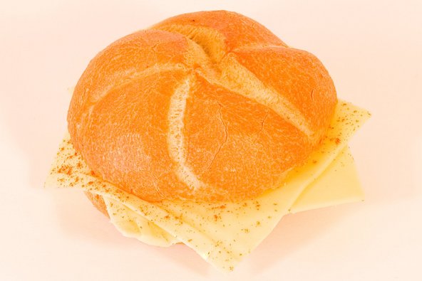 Kaiserbrötchen mit Remoulade bestrichen & mit Gouda belegt & mit Paprika bestreut