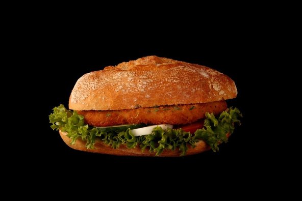 Krusti mit Remoulade bestrichen, mit Schnitzel, Tomate, Gurke, Ei & Salat belegt