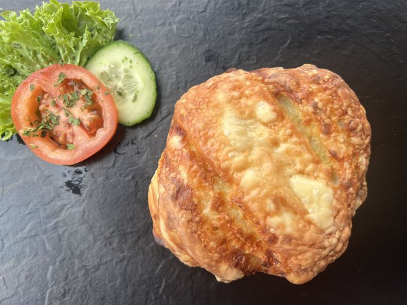 saftige Plunderschnecke mit zwei verschiedenen Käsesorten, gefüllt mit Mozzarellacreme & einer Scheibe Gouda