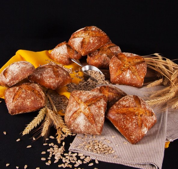 Weizenmehl (45%), Wasser, Vollkornschrot, Sonnenblumenkerne, Bananen, Kürbiskerne, Roggenmalzflocken, pflanzliches Öl: Raps, Palm, Kokos; Zucker, Honig, Aroma, Sojaschrot, Leinsaat, Maisflocken, Malzmehl: Gerste, Weizen; Malzextrakt: Gerstenmalz, Wasser; Weizenkleber, getrockneter Roggensauerteig: Roggenmehl, Anstellgut; Roggenmehl, Weizenspeisekleie, Weizenmalzmehl, Traubenzucker, Hefe, Speisesalz, Weizensauerteig, Weizengluten, Karamell, Backhefe, pflanzliche Fette: Palm, Kokos; Emulgator: Mono- und Diacetylweinsäureester von Mono- und Diglyceriden von Fettsäuren; Antioxidationsmittel: Alpha-tocopherol; Säureregulator: Citronensäure